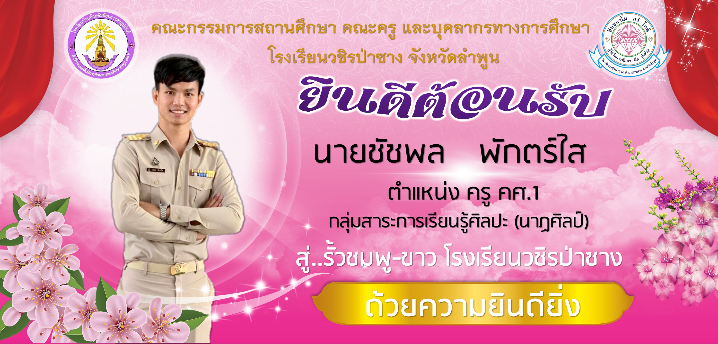 โรงเรียนวชิรป่าซาง ยินดีต้อนรับ "นายชัชพล พักตร์ใส" ตำแหน่งครู กลุ่มสาระการเรียนรู้ศิลปะ (นาฏศิลป์) สู่รั้วชมพู-ขาว ด้วยความยินดียิ่ง
