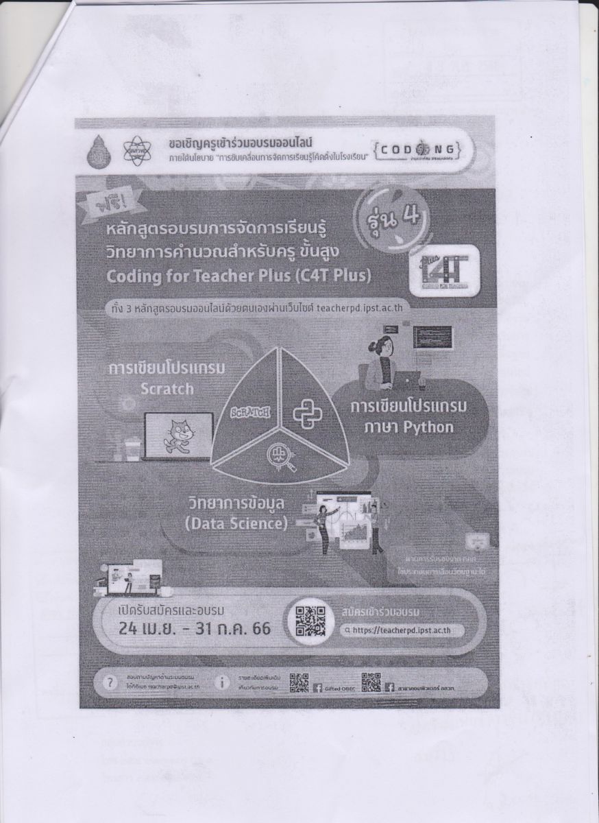 แจ้งข่าวประชาสัมพันธ์เข้าร่วมอบรมวิทยาการคำนวณ