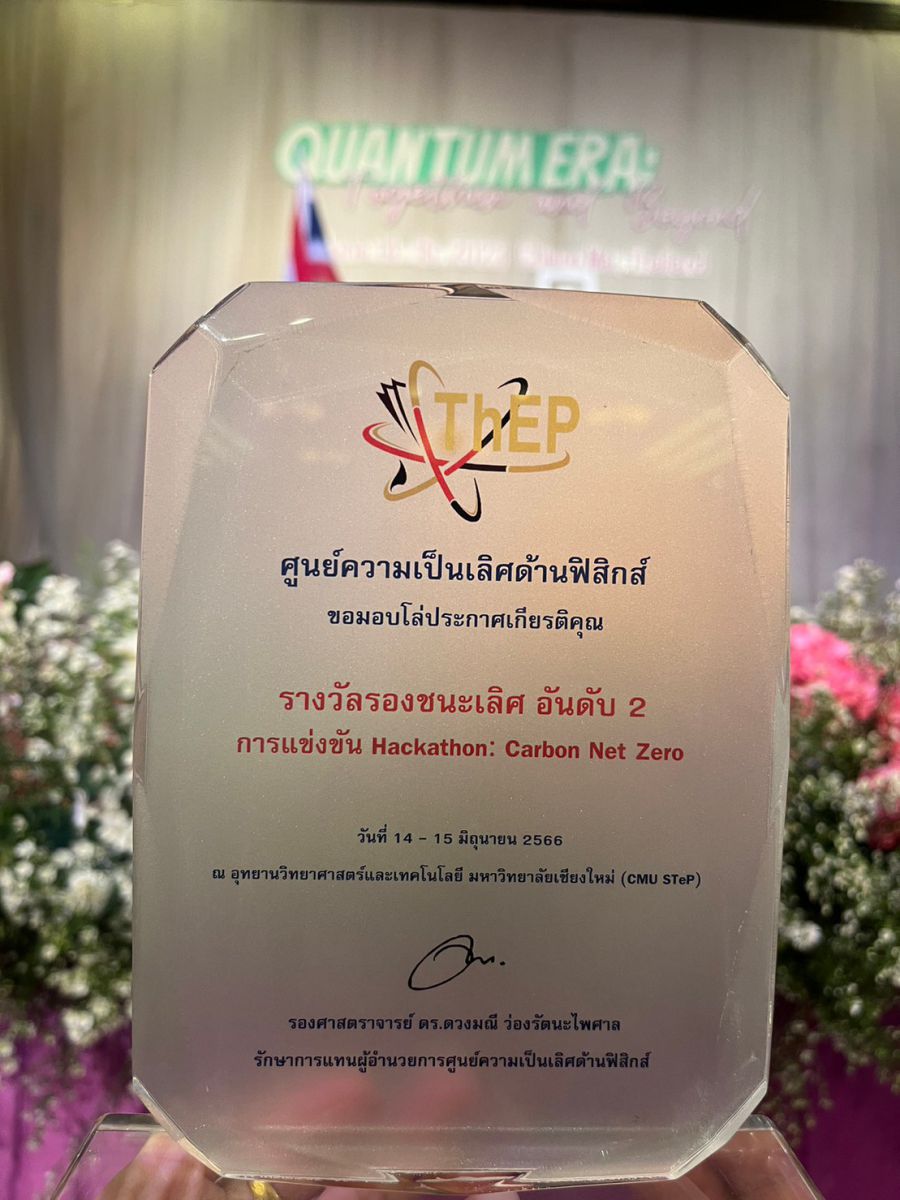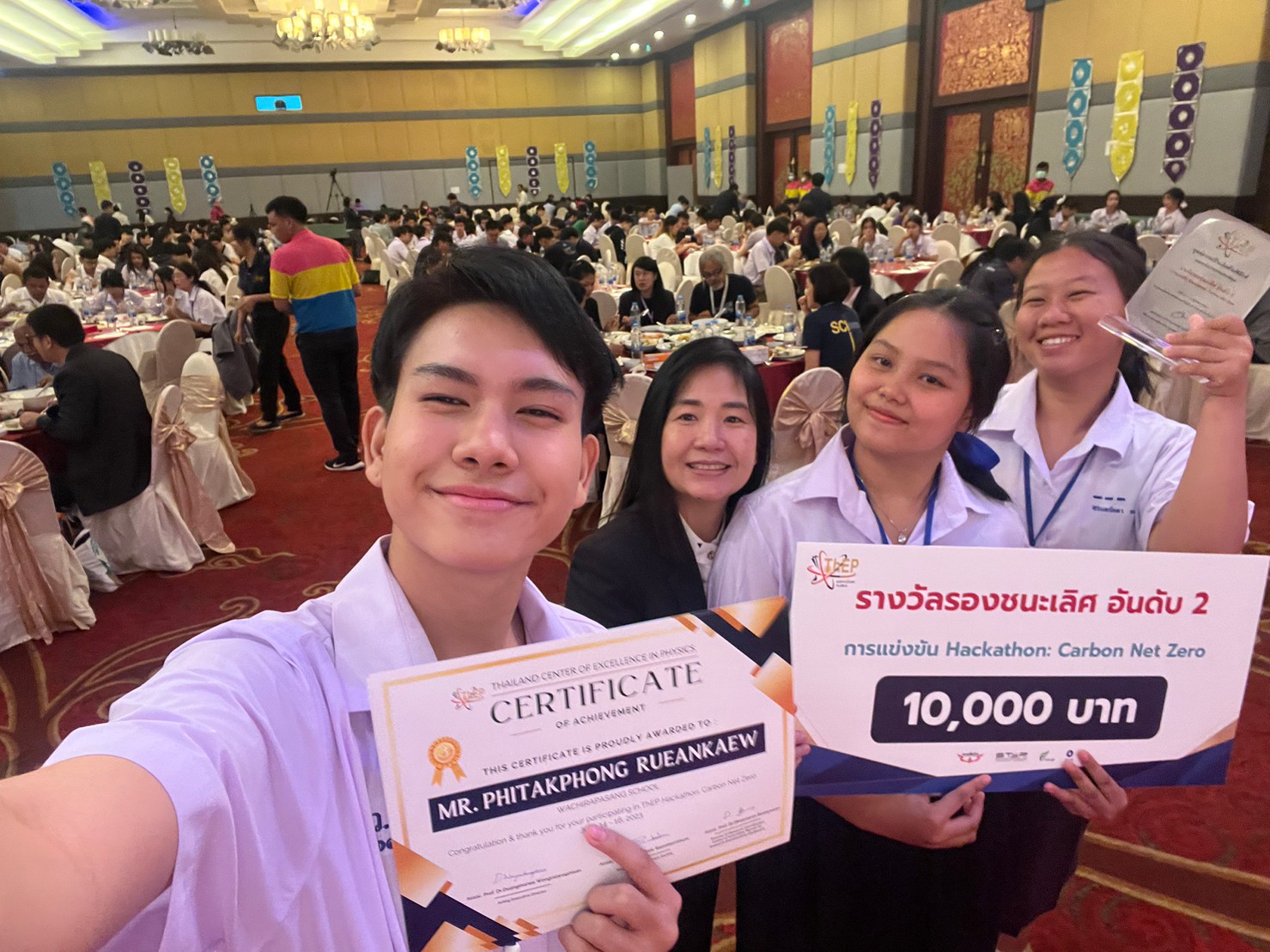 ...โรงเรียนวชิรป่าซางได้รับรางวัลรองชนะเลิศอันดับ 2 พร้อมโล่รางวัล เกียรติบัตร และเงินรางวัล 10,000 บาท ในการเข้าร่วมแข่งขัน Hackathon: Carbon Net Zero จัดโดยศูนย์ความเป็นเลิศด้านฟิสิกส์ (Thailand Center of Excellence in Physics: ThEP) เป็นการแข่งขันเพื่อระดมความคิดสร้างสรรค์และพัฒนานวัตกรรมใหม่ตามโจทย์ที่ได้รับ (Themes) Zero CO2 Waste via Physics Method ภายในระยะเวลา 24 ชั่วโมง ให้ครอบคลุม 3 ด้าน คือ