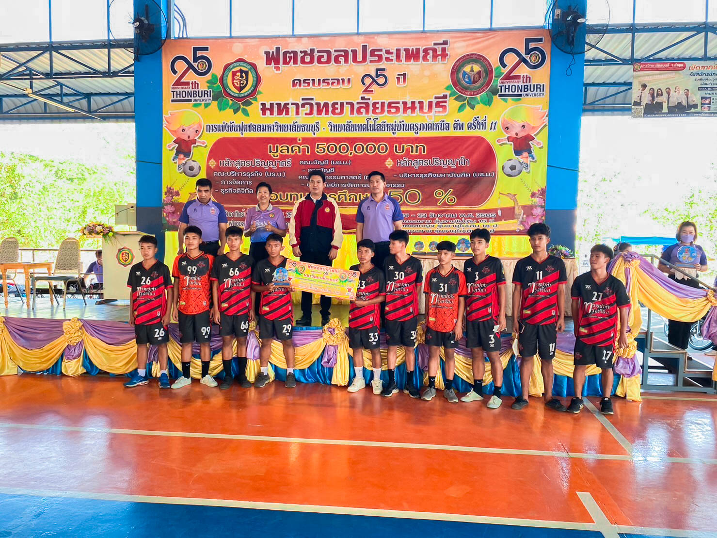 Lamphun Ranger คว้า "รางวัลรองชนะเลิศอันดับ 1" ในการแข่งขันฟุตซอลประเพณี ครบรอบ 25 ปี มหาวิทยาลัยธนบุรี เทคโนโลยีหมู่บ้านครูภาคเหนือ จังหวัดลำพูน ครั้งที่ 11 ชิงถ้วยเกียรติยศ ดร.บัญชาเกิดมณี อธิการบดีมหาวิทยาลัยธนบุรี แข่งขันในรุ่น ไม่เกิน15 ปี โดยมีคุณครูสมชาย เกิดฤทธิ์ เป็นผู้ควบคุมดูแลตลอดการแข่งขัน ณ สนามกีฬาฟุตซอลในร่ม มหาวิทยาลัยธนบุรี วิทยาเขตภาคเหนือ จังหวัดลำพูน