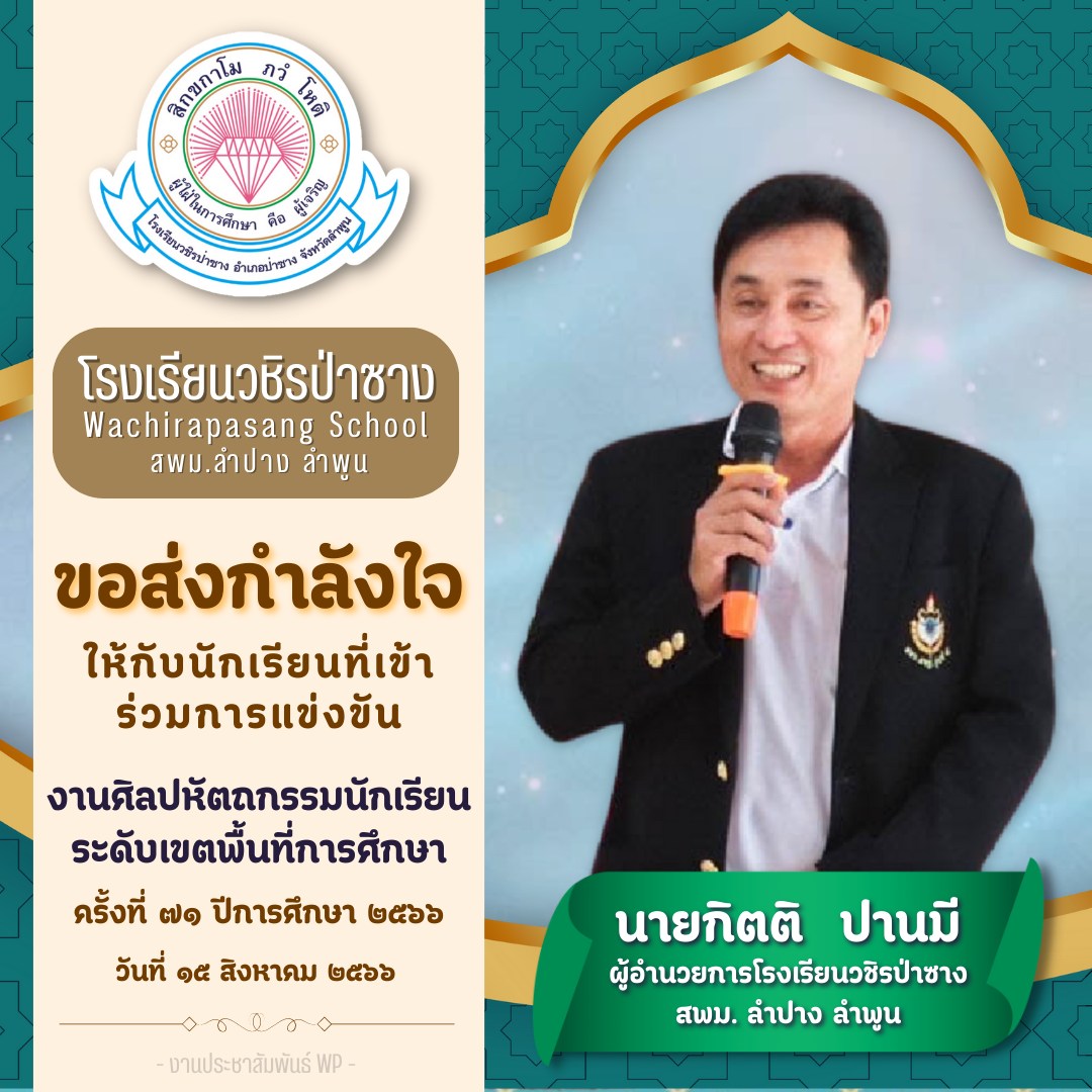 โรงเรียนวชิรป่าซาง ขอส่งกำลังใจให้กับนักเรียนที่เข้าแข่งขันงานศิลปะหัตถกรรมนักเรียนครั้งที่ 71 ปีการศึกษา 2566 ระดับเขตพื้นที่การศึกษา (กลุ่มโรงเรียนจังหวัดลำพูน)
