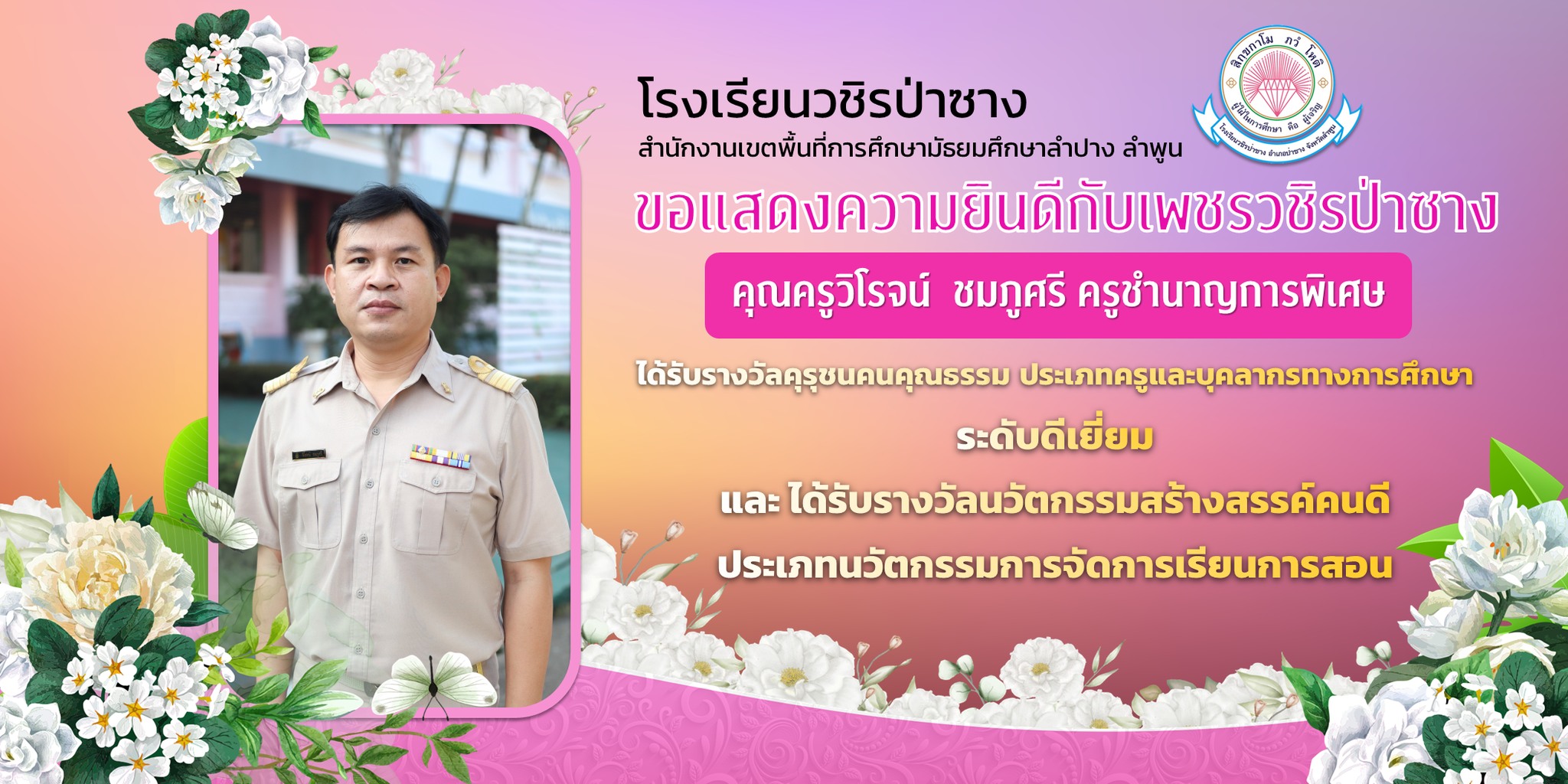 โรงเรียนวชิรป่าซาง ขอแสดงความยินดี กับ "คุณครูวิโรจช์ ชมภูศรี" ที่ได้รับรางวัล