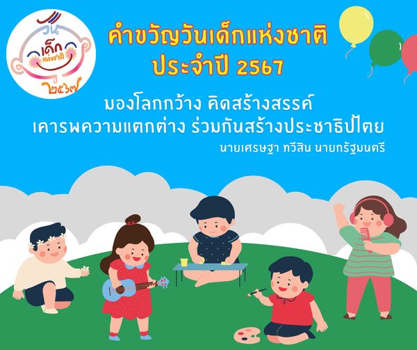 คำขวัญ เนื่องในวันเด็กแห่งชาติ ประจำปี 2567 จากนายเศรษฐา ทวีสิน นายกรัฐมนตรี