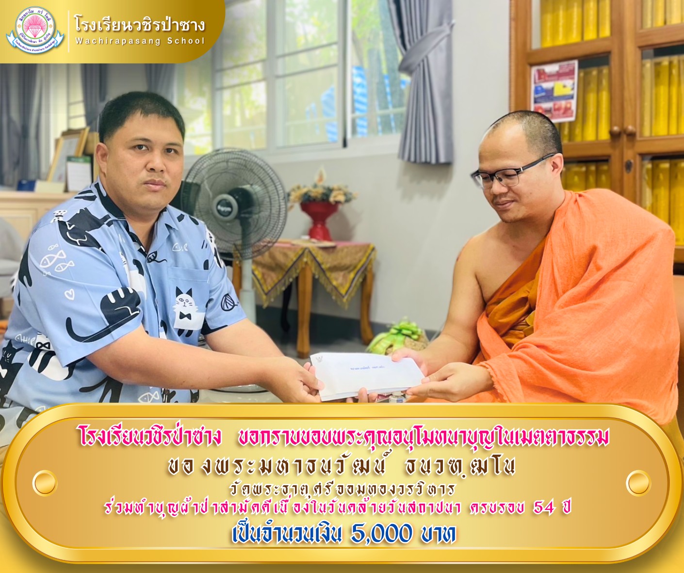 โรงเรียนวชิรป่าซาง ขอกราบขอบพระคุณอนุโมทนาบุญในเมตตาธรรมของ "พระมหาธนวัฒน์ ธนวฑฺฒโน"