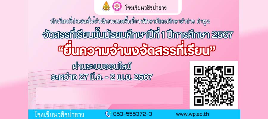 วันที่ 27 มีนาคม 2567 เป็นวันประกาศผลรายชื่อนักเรียนระดับชั้นมัธยมศึกษาปีที่ 1 ปีการศึกษา 2567 ตามปฏิทินการดำเนินงานของ สพฐ. จึง ขอความอนุเคราะห์มายังทุกท่านประชาสัมพันธ์ให้นักเรียนและผู้ปกครองในการยื่นความจำนงจัดหาที่เรียนให้นักเรียนที่ไม่มีที่เรียนผ่านระบบออนไลน์ และ จะแจ้งไว้ที่หน้าเว็บไซต์ของสำนักงานเขตพื้นที่การศึกษามัธยมศึกษาลำปาง ลำพูน