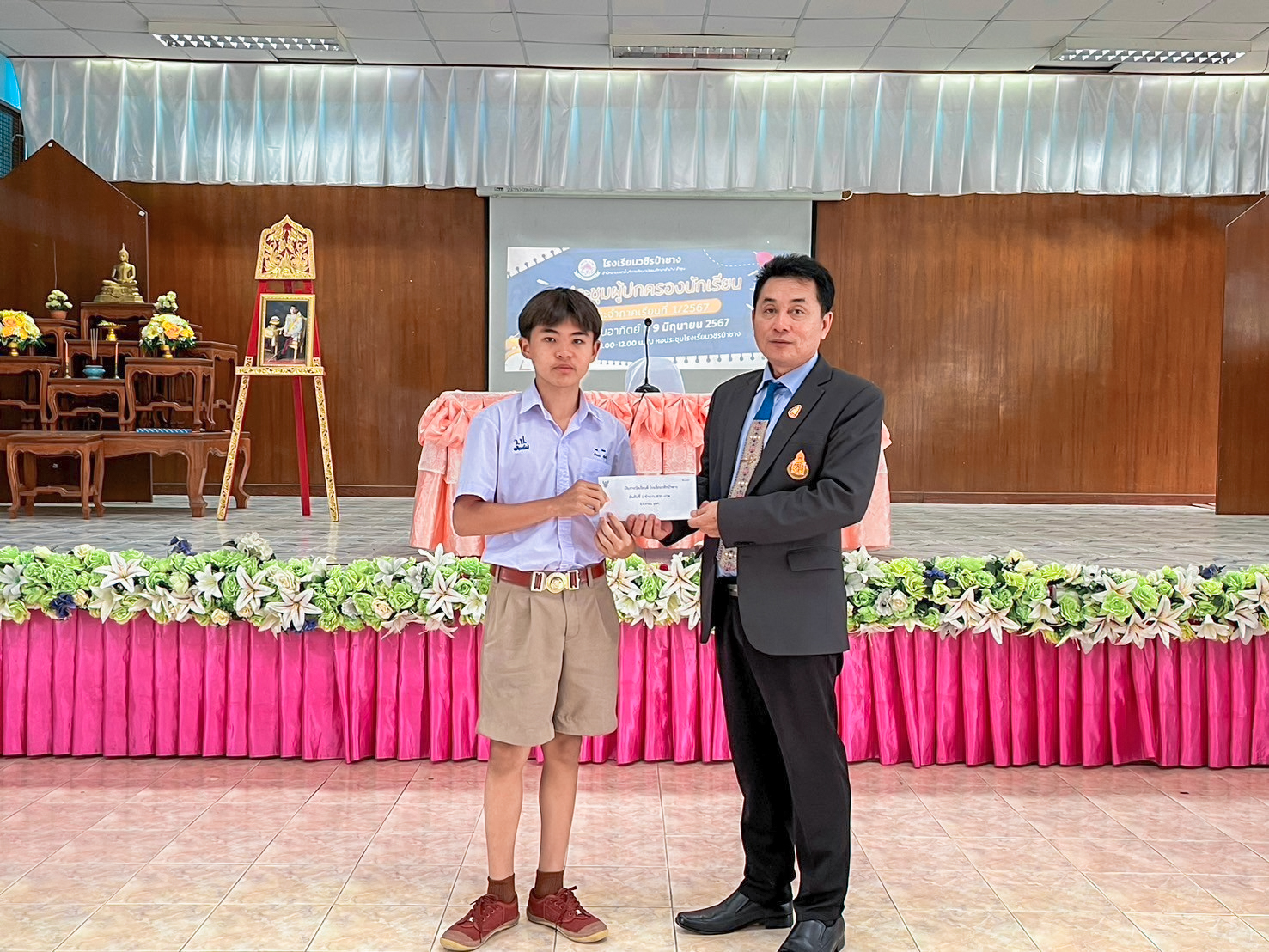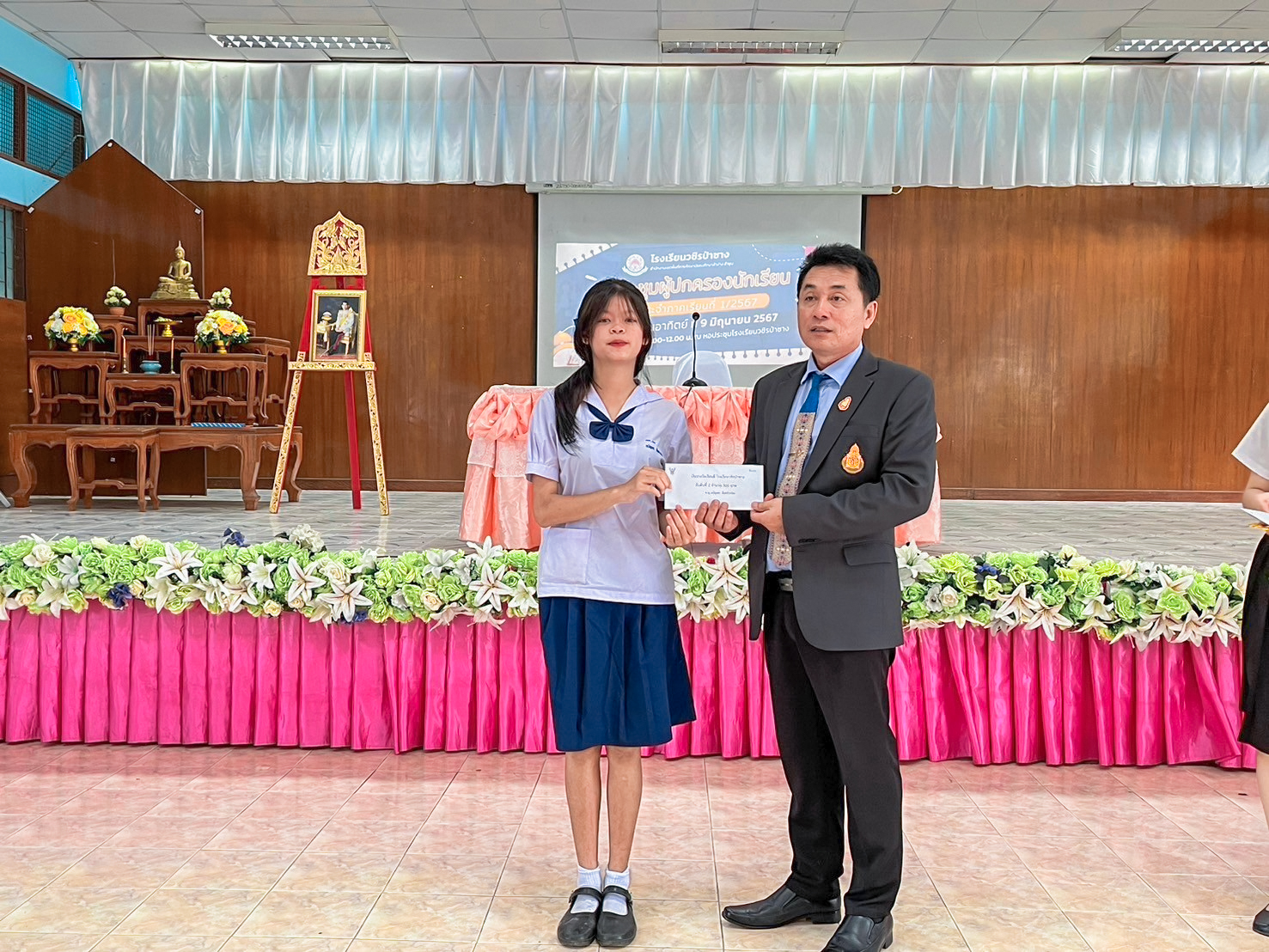 ...โดยมีการชี้แจงกิจกรรมต่าง ๆ ของภาคเรียนที่ 1/2567 จากผู้อำนวยการกิตติ ปานมี และฝ่ายบริหารกิจการนักเรียนได้พบปะพูดคุยกับผู้ปกครอง อีกทั้งมีการมอบทุนการศึกษาให้กับนักเรียนที่มีผลการเรียนดีประจำภาคเรียนที่ 2/2566 หลังจากนั้นได้มีการพบปะพูดคุยของครูที่ปรึกษาแต่ชั้นเรียน พร้อมทั้งมีการแจ้งผลการเรียนและเก็บค่าบำรุงการศึกษาในภาคเรียนที่ 1 ปีการศึกษา 2567 นี้