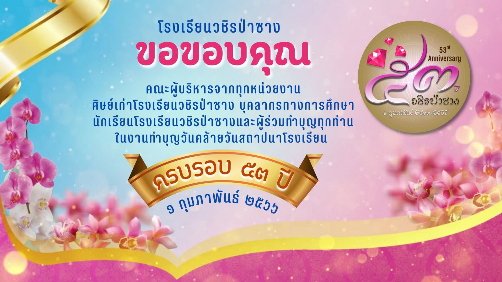 ศิษย์เก่าโรงเรียนวชิรป่าซาง บุคลากรทางการศึกษา นักเรียนโรงเรียนวชิรป่าซางและผู้ร่วมทำบุญทุกท่าน...ในงานทำบุญวันคล้ายวันสถาปนาโรงเรียนวชิรป่าซาง ครบรอบ ๕๓ ปี ๑ กุมภาพันธ์ ๒๕๖๖