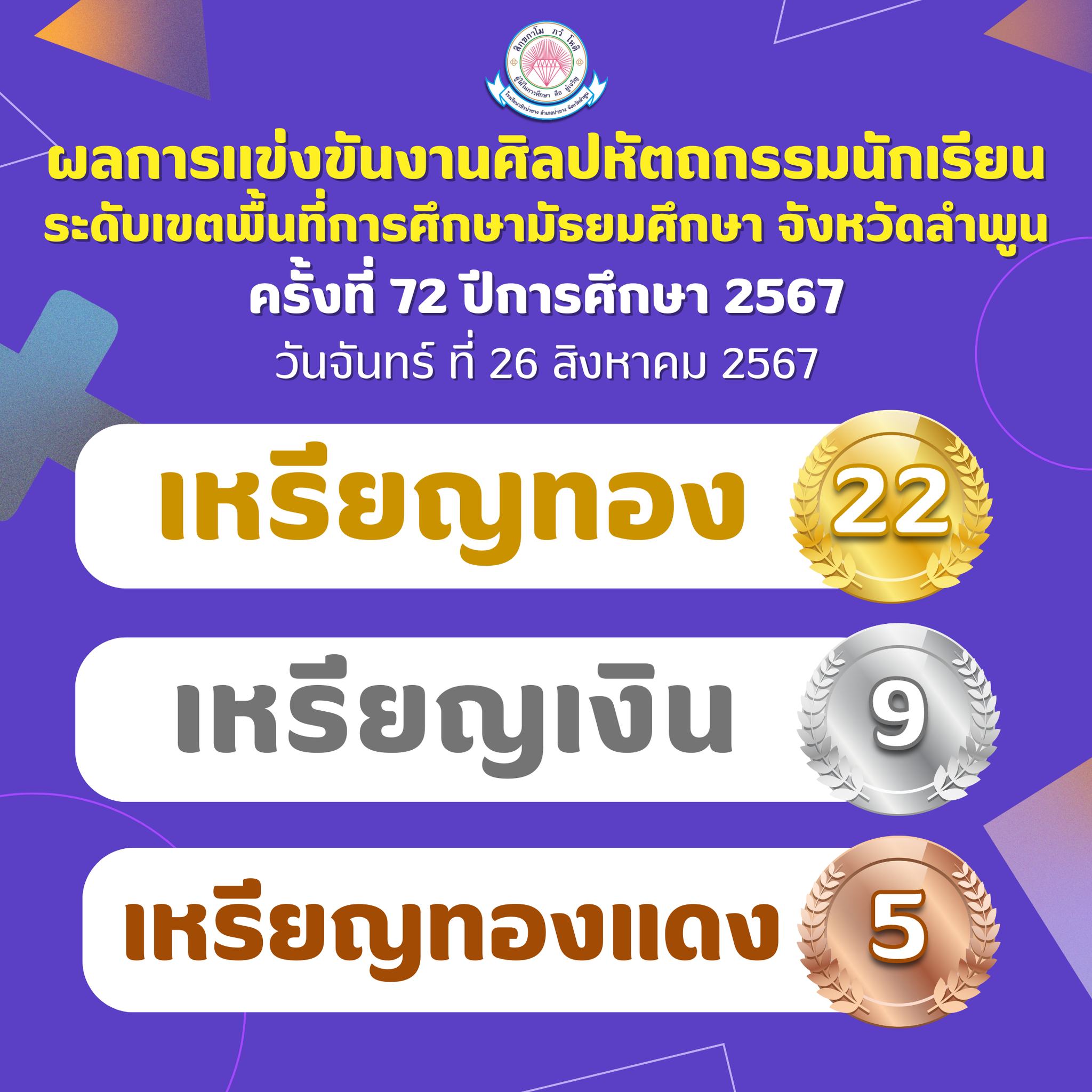 สรุปผลการแข่งขันทักษะวิชาการ งานศิลปหัตถกรรมนักเรียนครั้งที่ 72