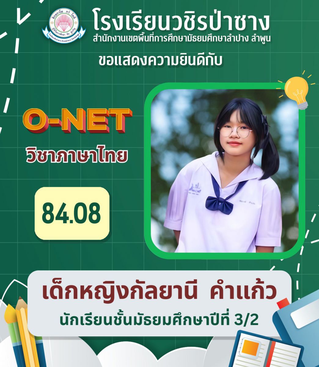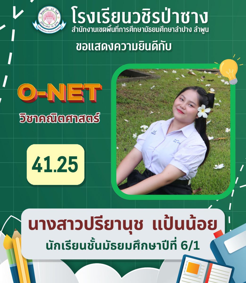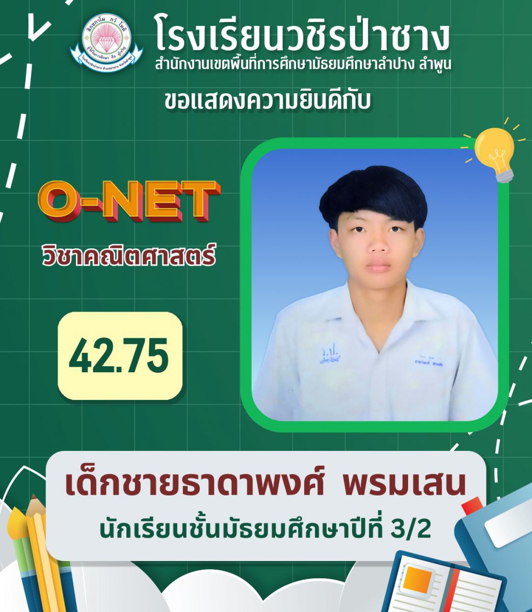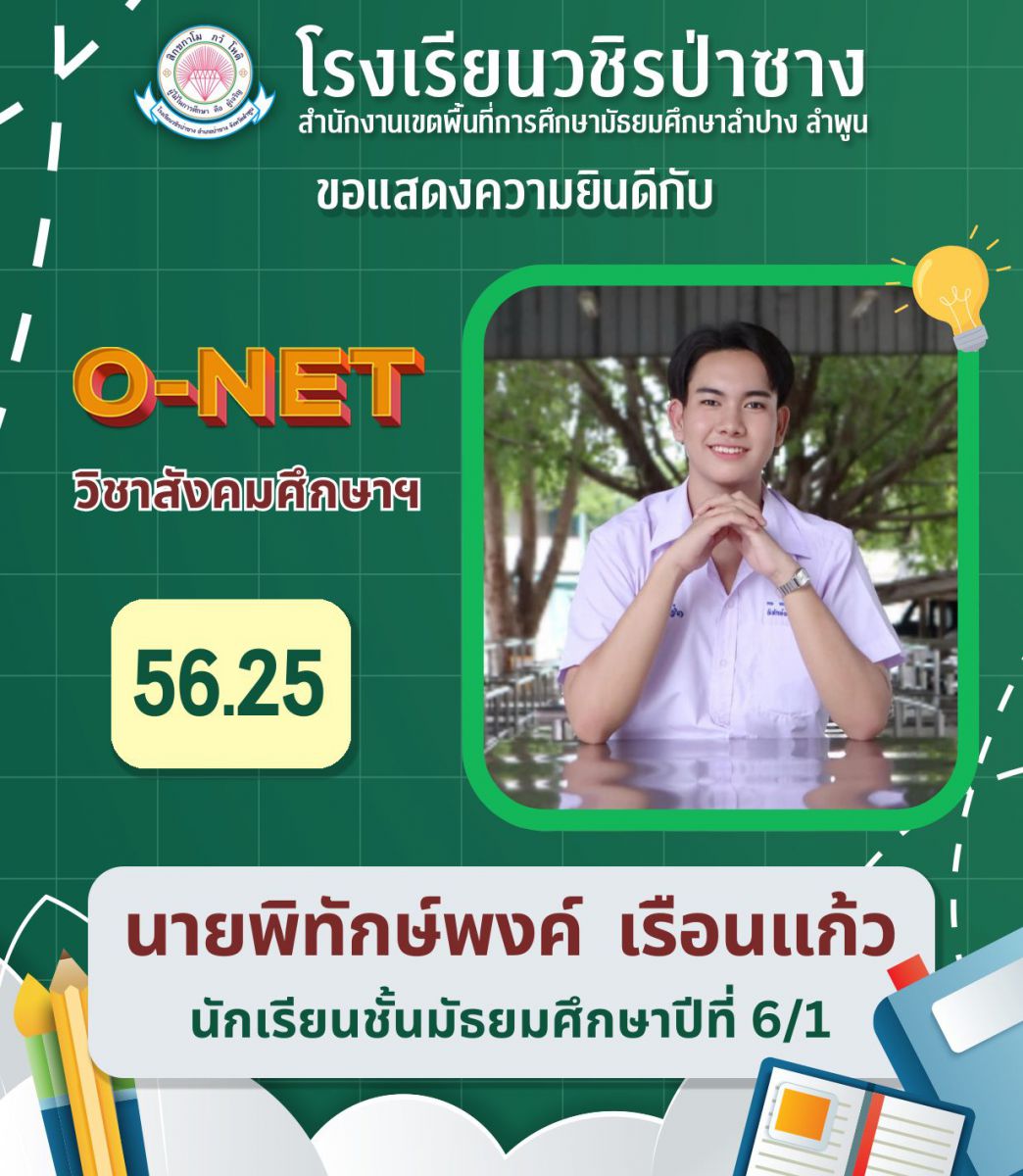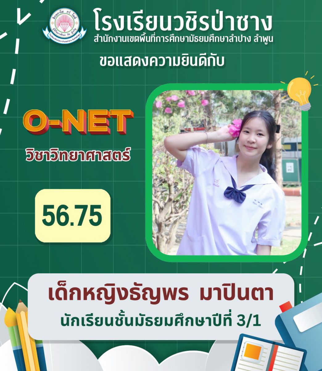 รายงานผลการทดสอบระดับชาติขั้นพื้นฐาน (O-NET) แต่ละรายวิชาสูงที่สุดของโรงเรียนวชิรป่าซาง ปีการศึกษา 2567 ชั้นมัธยมศึกษาปีที่ 3 และ 6