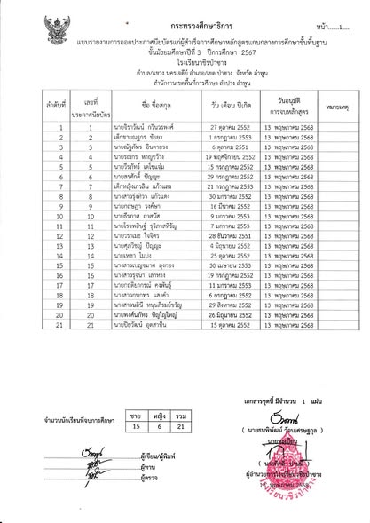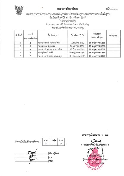แจ้งรายชื่อนักเรียนชั้นมัธยมศึกษาปีที่ 3 และ 6 ที่สำเร็จการศึกษาในรอบที่ 2