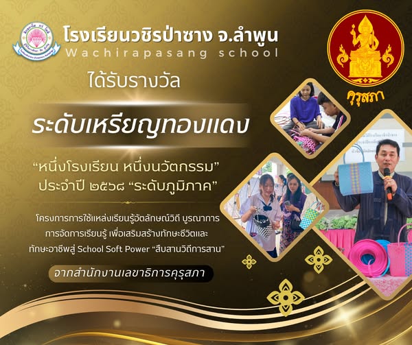 ขอแสดงความยินดี กับ โรงเรียนวชิรป่าซาง ในโอกาสได้รับรางวัล ระดับเหรียญทองแดง