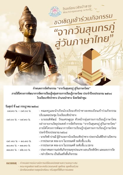 แจ้งกำหนดการกิจกรรม "จากวันสุนทรภู่ สู่วันภาษาไทย" ในวันที่ ๒๕ กรกฎาคม ๒๕๖๘ ณ หอประชุมโรงเรียนวชิรป่าซาง
