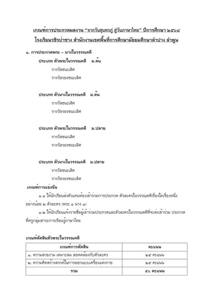 สอบถามรายละเอียดเพิ่มเติมได้ที่กลุ่มสาระการเรียนรู้ภาษาไทย: