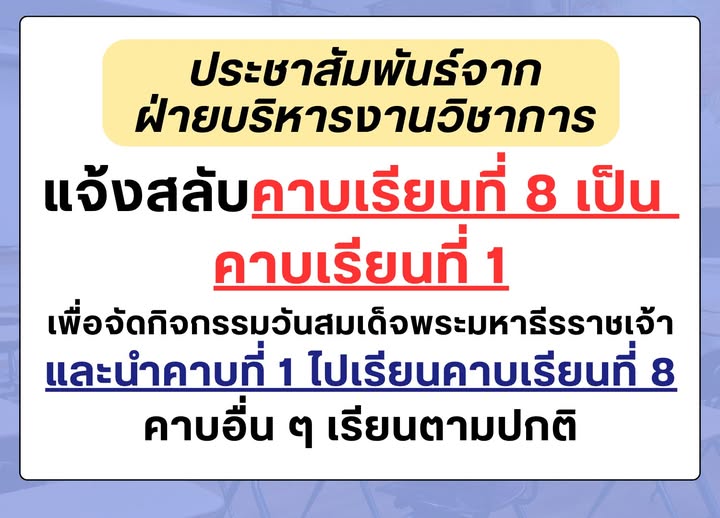 สลับคาบเรียน ในวันพุธที่ 26 พฤศจิกายน 2568