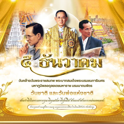 ๕ ธันวาคม "วันชาติ และวันพ่อแห่งชาติ" วันคล้ายวันพระบรมราชสมภพพระบาทสมเด็จพระบรมราชาธิเบศร มหาภูมิพลอดุลยเดช มหาราชบรมนาถบพิตรร่วม