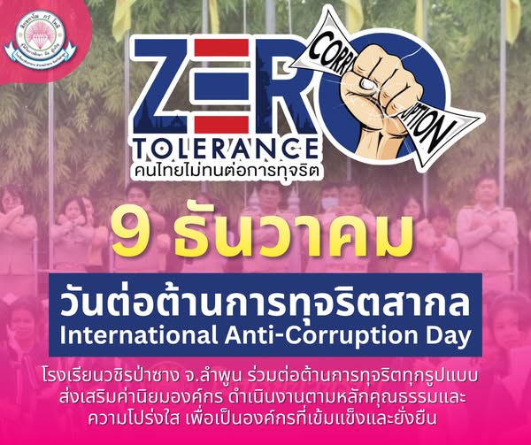 โรงเรียนวชิรป่าซาง จ.ลำพูน ร่วมต่อต้านการทุจริตทุกรูปแบบ ส่งเสริมค่านิยมองค์กร ดำเนินงานตามหลักคุณธรรมและ ความโปร่งใส เพื่อเป็นองค์กรที่เข้มแข็งและยั่งยืน
