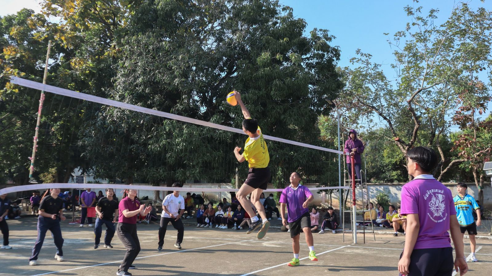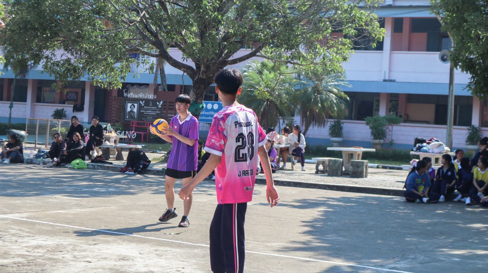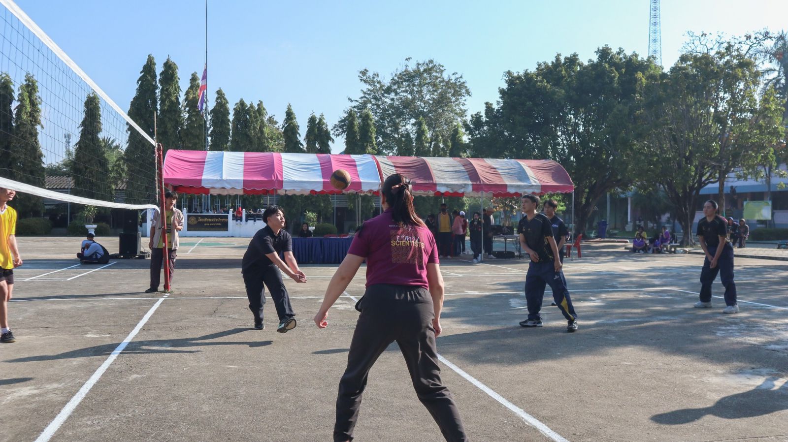 ภาพบรรยากาศ กีฬาต้นพิกุลเกมส์ 2025 วันที่ 11 ธันวาคม 2568 เริ่มต้นด้วยการแข่งขันของวันด้วยการแข่งขันวอลเลย์บอลระหว่างครูและนักเรียนชั้นมัธยมศึกษาปีที่ 6 การแข่งขันเปตอง เซปักตะกร้อ แชร์บอลและบาสเกตบอลของแต่ละสี
