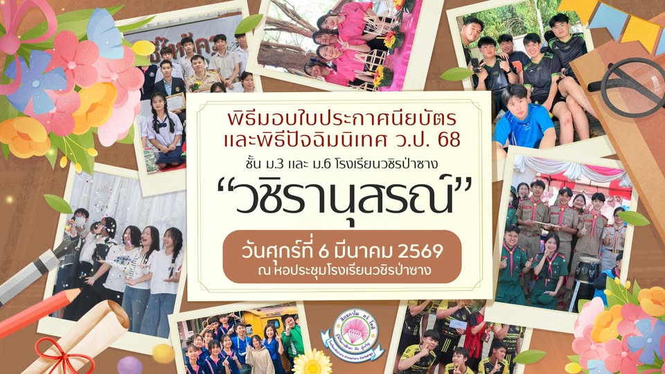 พิธีมอบใบประกาศนียบัตรและพิธีปัจฉิมนิเทศนักเรียนชั้นมัธยมศึกษาปีที่ 3 และชั้นมัธยมศึกษาปีที่ 6 ปีการศึกษา 2568 “วชิรานุสรณ์ ว.ป.’68”