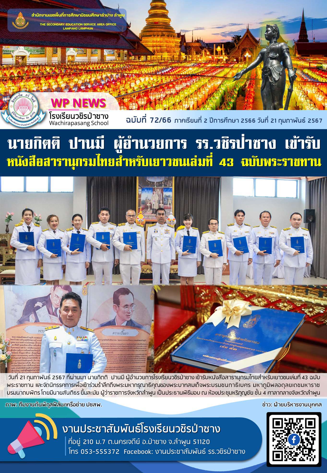 จดหมายข่าวประชาสัมพันธ์โรงเรียนวชิรป่าซาง ฉบับที่ 72/66