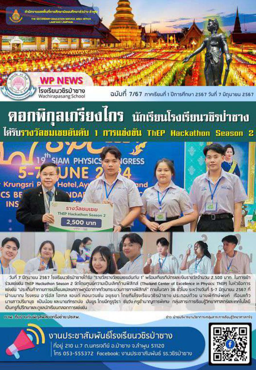 จดหมายข่าวประชาสัมพันธ์โรงเรียนวชิรป่าซาง ฉบับที่ 7/67