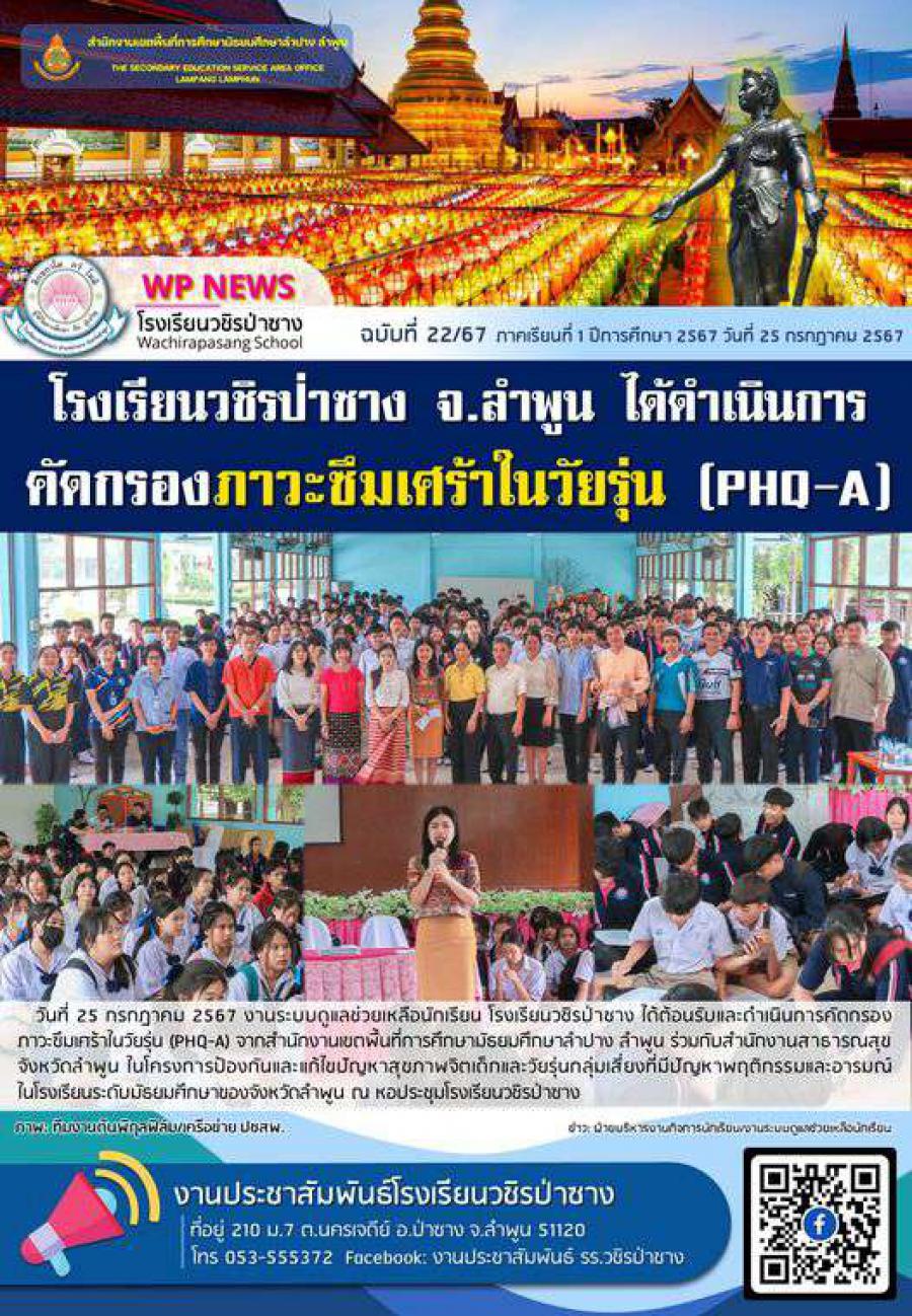 จดหมายข่าวประชาสัมพันธ์โรงเรียนวชิรป่าซาง ฉบับที่ 22/67