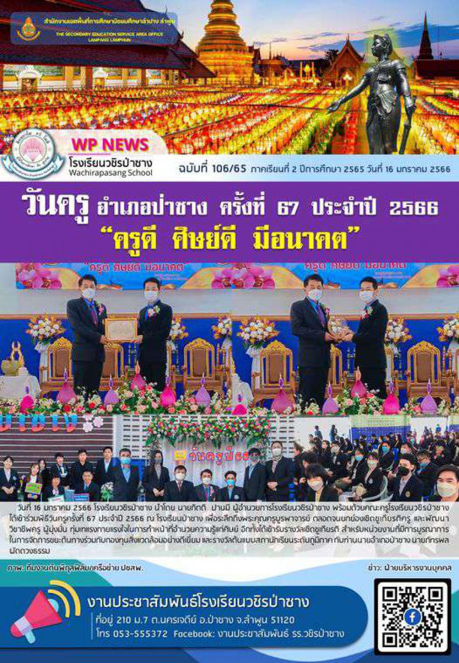 จดหมายข่าวประชาสัมพันธ์โรงเรียนวชิรป่าซาง ฉบับที่ 106/65