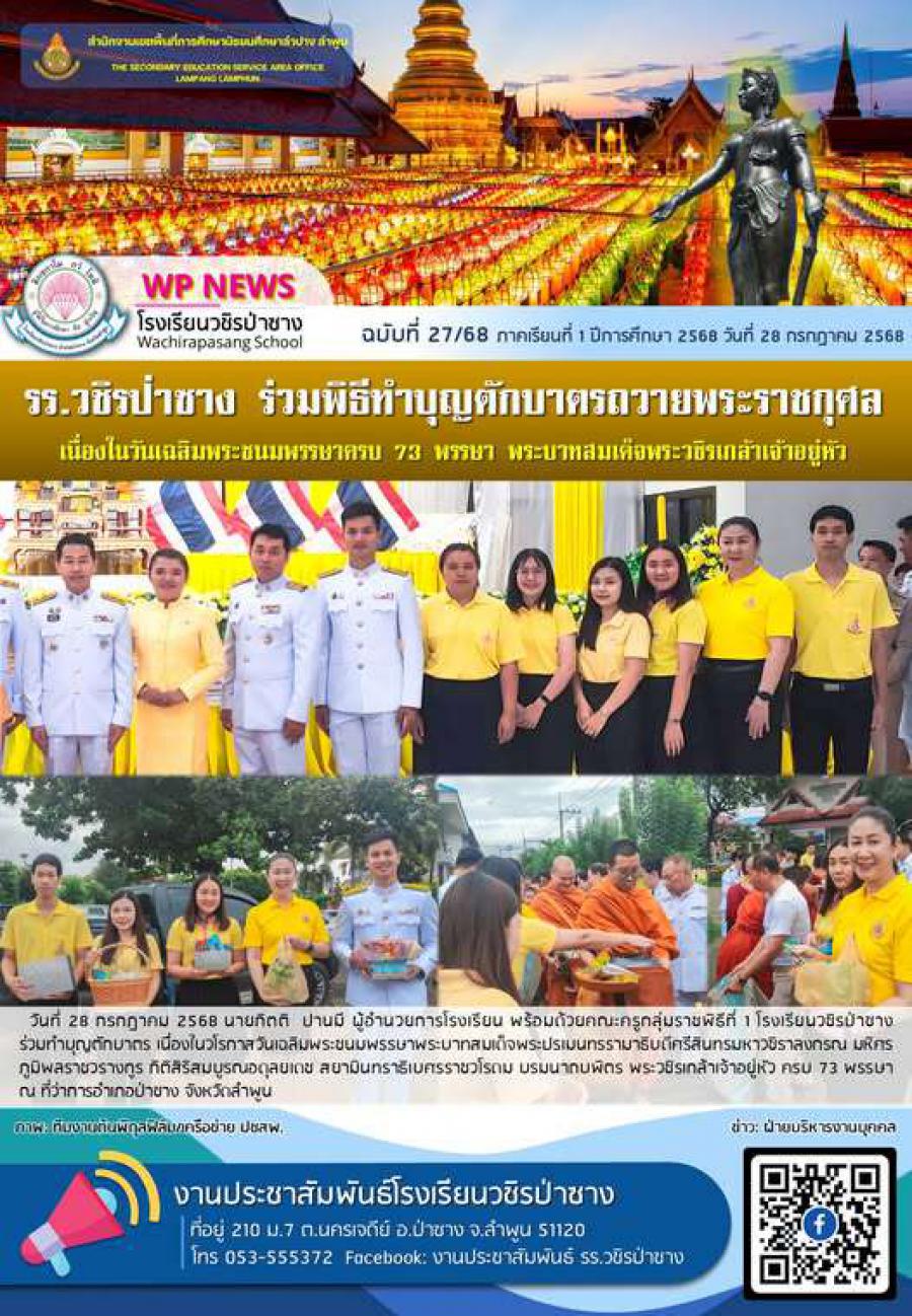 จดหมายข่าวประชาสัมพันธ์โรงเรียนวชิรป่าซาง ฉบับที่ 27/68