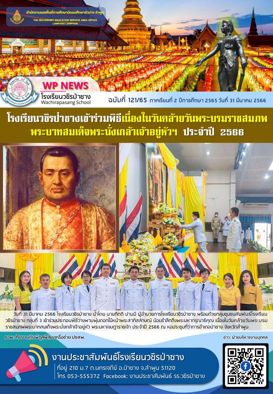 จดหมายข่าวประชาสัมพันธ์โรงเรียนวชิรป่าซาง ฉบับที่ 121/65