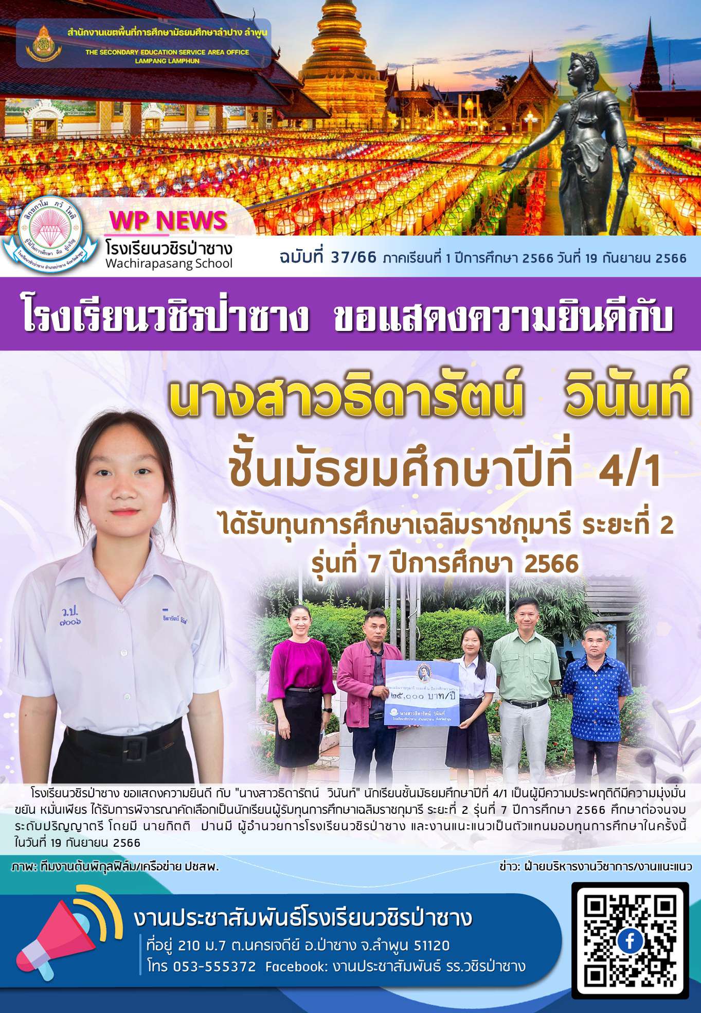 จดหมายข่าวประชาสัมพันธ์โรงเรียนวชิรป่าซาง ฉบับที่ 37/65