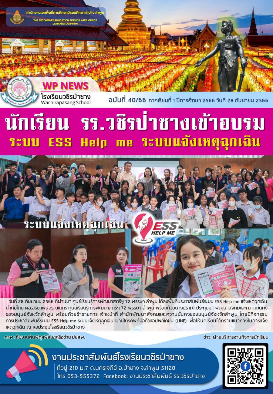จดหมายข่าวประชาสัมพันธ์โรงเรียนวชิรป่าซาง ฉบับที่ 40/66