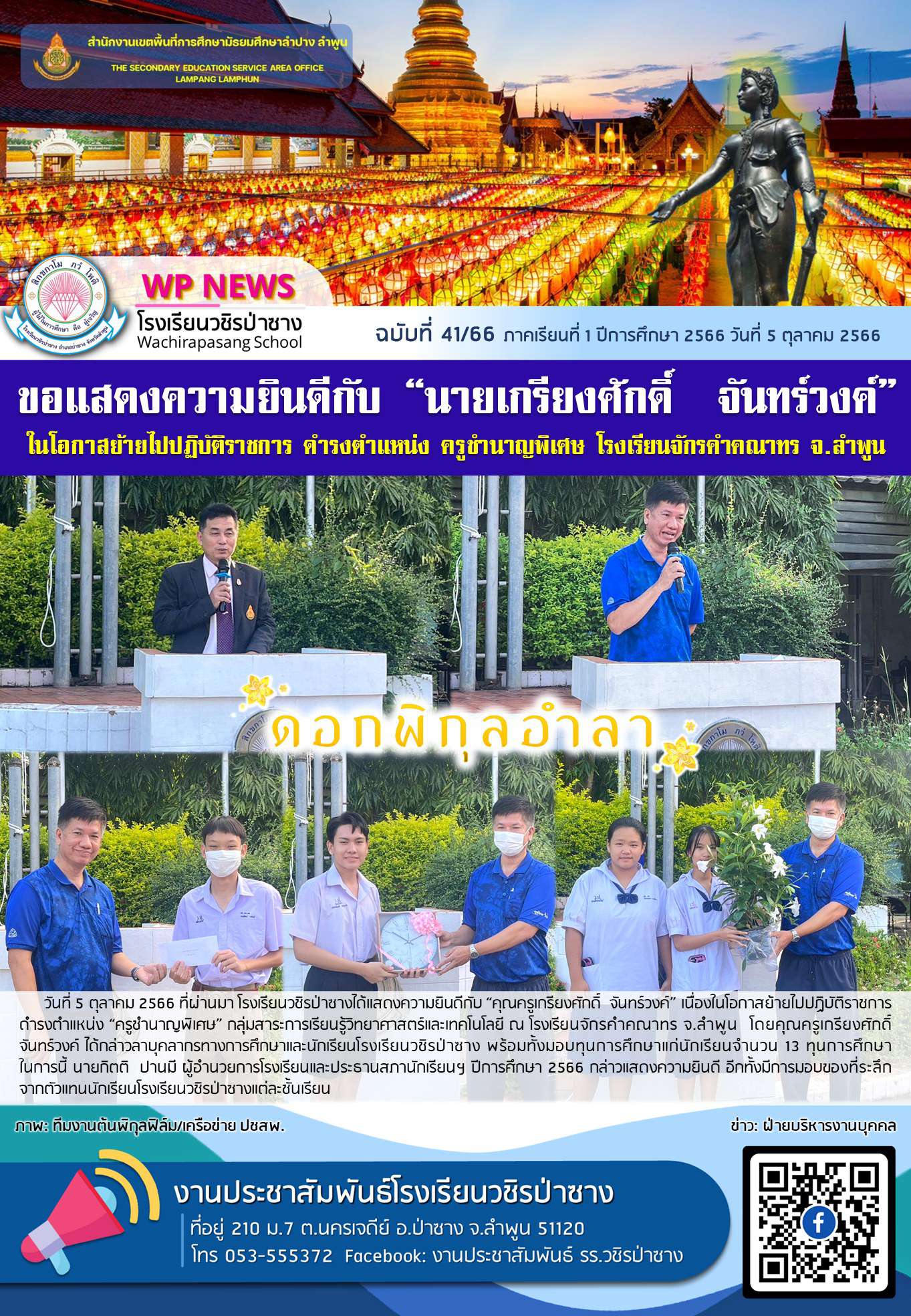 จดหมายข่าวประชาสัมพันธ์โรงเรียนวชิรป่าซาง ฉบับที่ 42/66