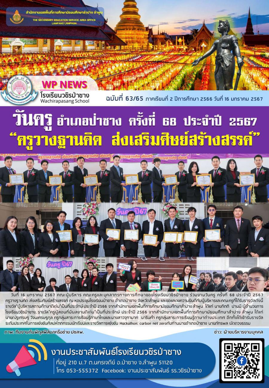 จดหมายข่าวประชาสัมพันธ์โรงเรียนวชิรป่าซาง ฉบับที่ 63/66